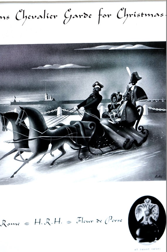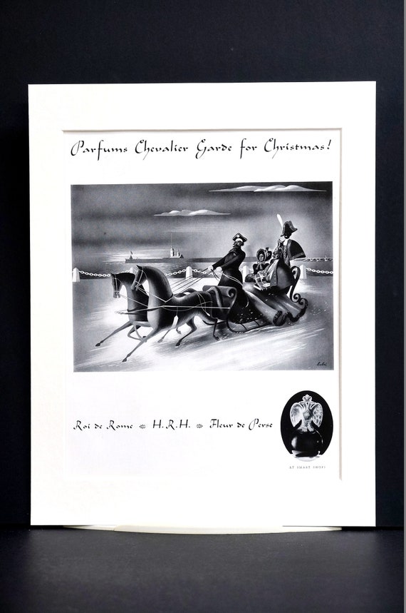 Christmas Perfume Ad 1937 ROI de ROME FLEUR de Perse Paris Parfum Sleigh Ride Professionally Matted Vogue Advertising Print Ready to Frame