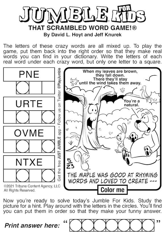Jumble® Crosswords by David L. Hoyt | Tribune Content Agency Jumble® Crosswords TM by David L. Hoyt Hoyt meshes interesting facts, wordplay and creative visual tricks in each puzzle. Solvers read the clues, unscramble the answers and place the answers in a solution grid. When the puzzle is complete, players unscramble the letters circled in the diagram to reveal a humorous bonus word.