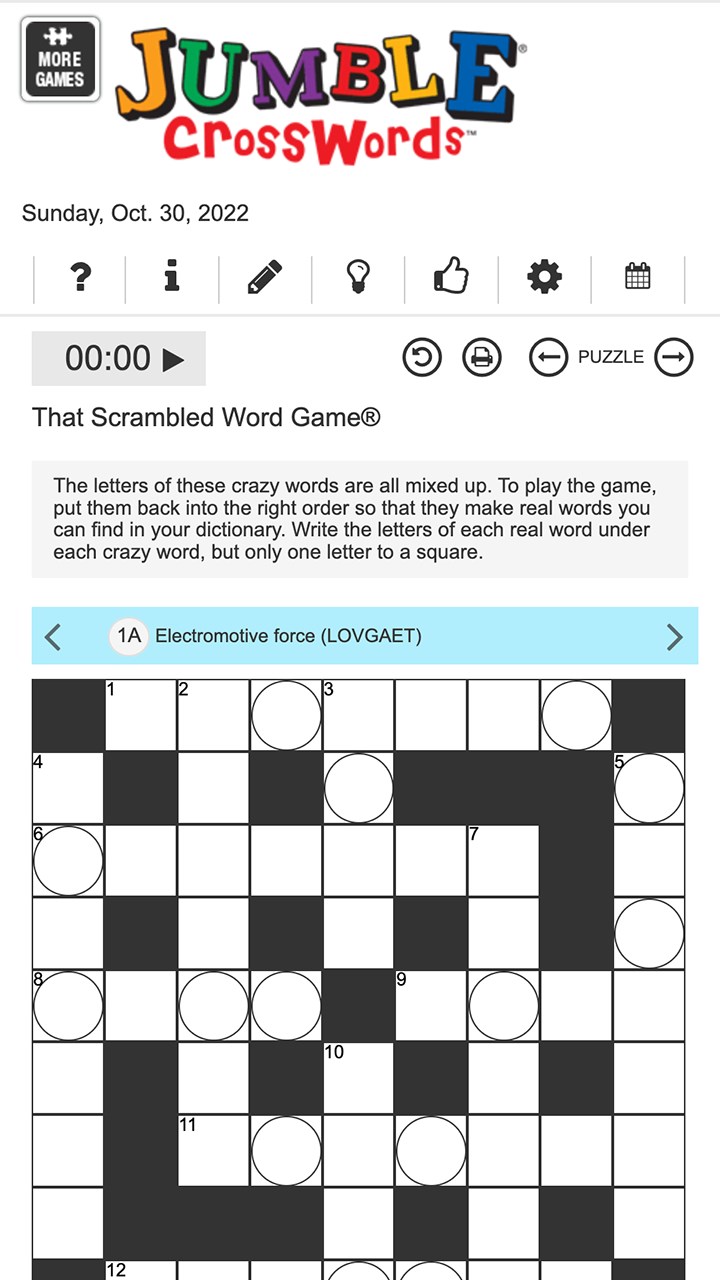 Get Jumble Crossword Daily - Microsoft Store en-TV Jumble Crosswords™ appear in many newspapers and puzzle books. In a Jumble Crossword®, David gives you a clue and a scrambled selection of letters to make the answer. As you complete the grid, your answers reveal a new set of letters for answering that puzzle's 'Final Jumble Clue.' You'll nourish new brain cells as you solve every new puzzle.